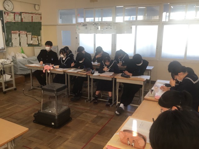 1年生は、2時間目にテスト勉強をしていました。明日から始まる学年末テストに向けて、それぞれのペースで真剣に取り組んでいました。2年生は、音楽の時間に卒業式の歌を練習していました。パートに分かれて自分たちで練習していました。3年生は、英語に時間に入試問題の対策を行っていました。入試当日まで、全力で取り組んでいきましょう。