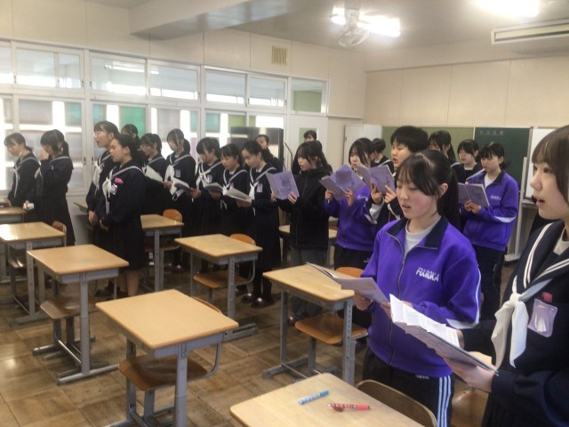 2/19 卒業式の歌練習(1・2年) 公開日 2026/02/19 更新日 2026/02/19 学校行事 1・2年生が、朝の活動時間に卒業式の歌の練習をしました。パートごとに分かれ、2年生の代表者が指示をしての練習でした。卒業式まであと2週間ほどですが、精一杯練習し、3年生に素敵な歌を届けたいと思います。 +3