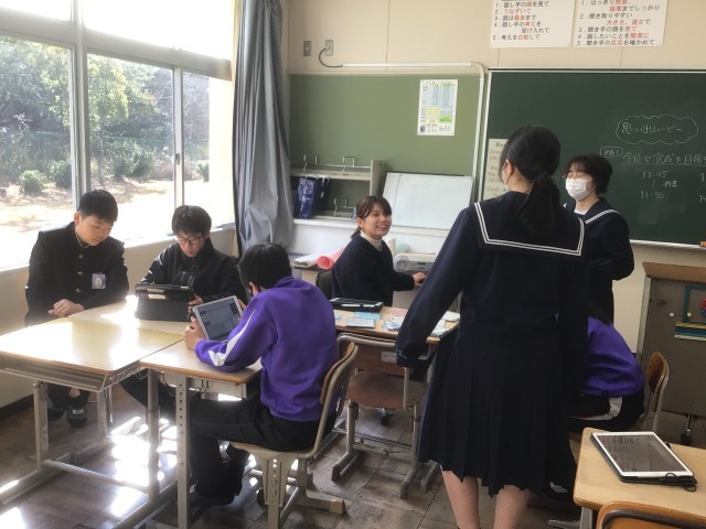 卒業を祝う会が近づいてきています。1・2年生が各実行委員会に分かれて熱心に準備を進めています。装飾チームはきれいなお花や輪っかを黙々と作っていました。招待状チームはAIの力も借りながら工夫して作成していました。劇チームは先生役、生徒役となってみんな熱演していました。ちらっと見ただけですが、面白いです!思い出ムービーチームは、写真の選定や選曲が進んでいます。ソーランチームは汗をかきながら全力で踊っていました。進行チームは、あるアニメをモチーフにして、楽しい進行を練習中でした!どのチームも3年生に喜んでもらうために一生懸命準備を進めています。3年生のみなさんお楽しみに!!