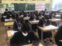 1年生は、理科の時間に地震について学習していました。地震の振れがどれくらいの速さで伝わるかなどを数学の知識も使って計算していました。2年生は、国語の時間に討論をしていました。朝ごはんは、「パン派」「ご飯派」を自分の考えをしっかりともって話し合いました。3年生は、体育の授業で選択球技を行っていました。「サッカー」「アルティメット」「ティーボール」の3種目に分かれて、楽しくゲームをしていました。1・2学級は、作業の時間に畑の草取りをしていました。自分たちで植えた苗がしっかりと育つように丁寧に行っていました。