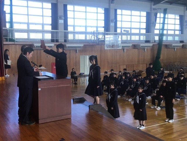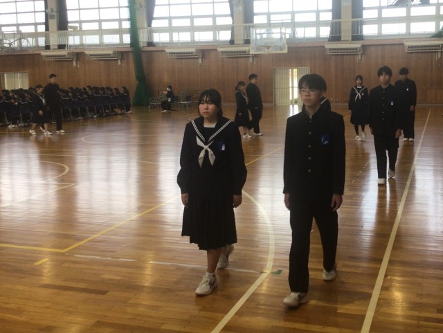 3/4 卒業式予行練習 公開日 2026/03/04 更新日 2026/03/04 学校行事 今日の1・2時間目に、卒業式の予行練習をしました。卒業生は1・2年生に立派な姿を見せようと、1・2年生は卒業生に感謝の思いを伝えようと精一杯の気持ちで臨みました。授業や1・2年生でお世話になった先生の話を聞く場面もあり、本番同様素敵な雰囲気での練習となりました。卒業生にとっては、藤中で過ごす日は、今日を入れて後3日です。たくさんの思い出とともに、立派な姿で巣立っていってほしいと思います。 +5