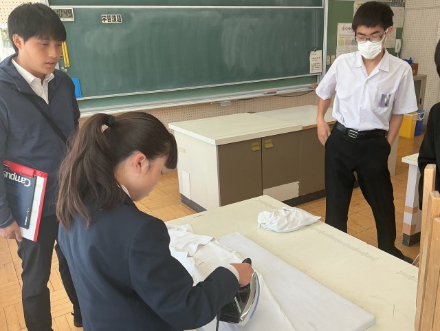 1・2学級の生徒が、自分たちの給食のエプロンのアイロンがけを行いました。1年生にとっては、初めてのことだったかもしれませんが、2・3年生の先輩が丁寧に教えてくれたので、とても上手にアイロンがけができていました。これからもみんなで協力していろいろなことに挑戦していきましょう。