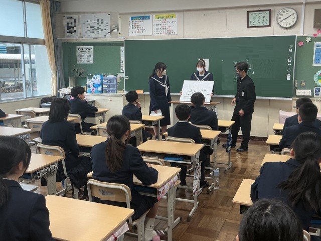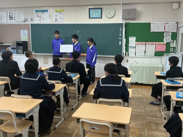朝の活動の時間に、各組団の団長・副団長が1・2年生の組団にそれぞれのスローガンを伝達しました。スローガンは、青組団「蒼穹之志」、黄組団「AUREA」、赤組団「疾風怒濤」です。3年生を中心に、みんなで心を一つにして素敵な体育祭にしていきましょう。