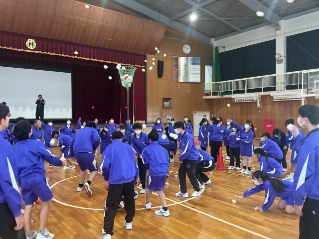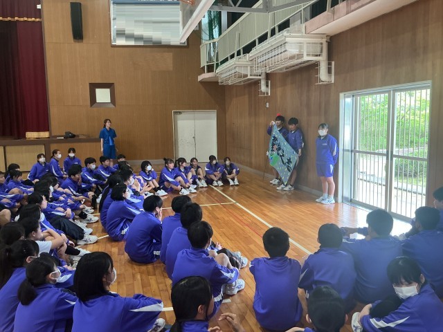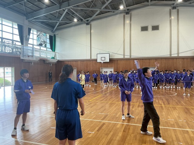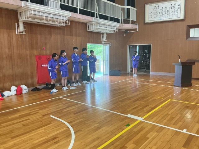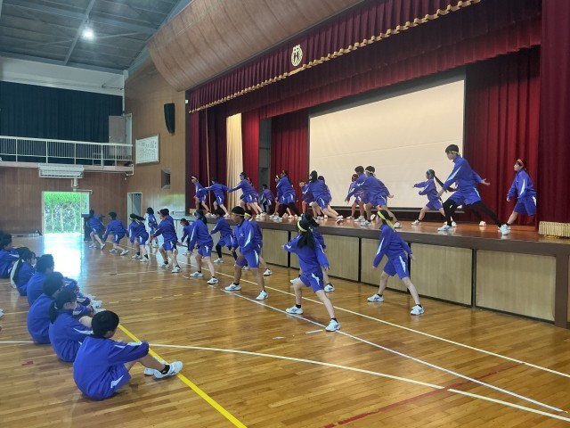 本日、新入生歓迎会と組団結成式を行いました。歓迎会では、生徒会役員が中心になって会を運営しました。組団で協力してレクリエーションを楽しんだり、ソーラン隊の生徒がソーラン節を披露したりしました。特に、ソーラン隊はとても立派に踊ることができ、藤中の伝統をしっかりと1年生に伝えることができました。