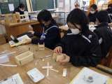 1年の技術では、自分の欲しい形の棚やケースを作成するために模型を作っています。 ...