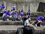 家から持ってきたお弁当で昼食です。コンサート広場で楽しくいただきました。 舞台に...