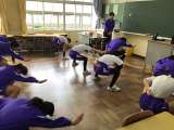 1年生が、組団に分かれて「創作ソーラン」の練習をしています。3年生の団長・副団長...