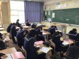 連休の間の授業ですが、どの生徒も真剣に授業に取り組んでいます。 1年生、合同体育...