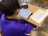 英語の授業風景です。 1年生は、単語を書く練習をしていました。 2年生は、タブレ...