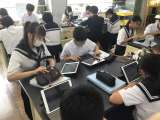 2年生の理科では、タブレットを使って、自分の考えをまとめていました。3年生の理...