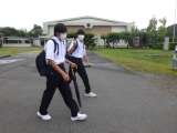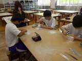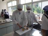 2年生の家庭科では、魚(サケ)のムニエルと付け合わせ(じゃがいも)の調理実習を行...