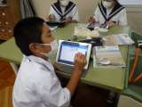 3年生の数学では、新しい関数の特徴をまとめるために、学習用タブレットを使って、班...