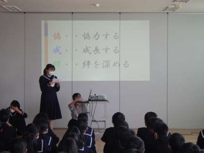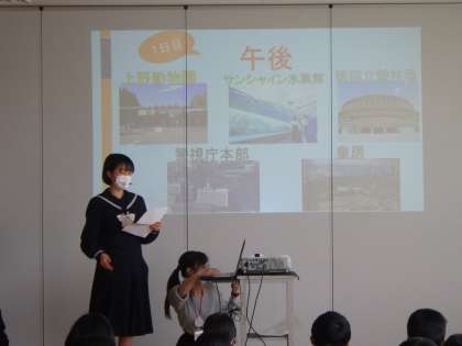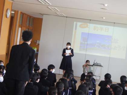 修学旅行実行委員から、今年度の旅程や学級散策について説明がされました。