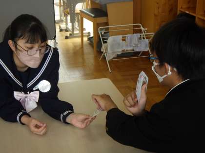 本日はトランプでババ抜きです。みんなで楽しめるようにルールを確認しながら、笑顔の溢れる時間になりました。