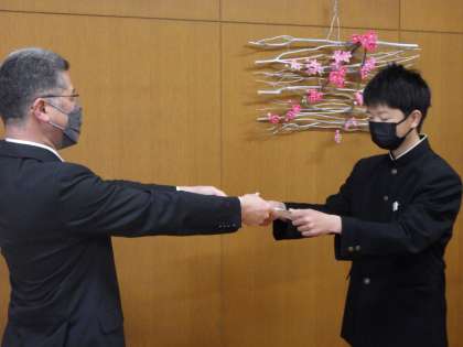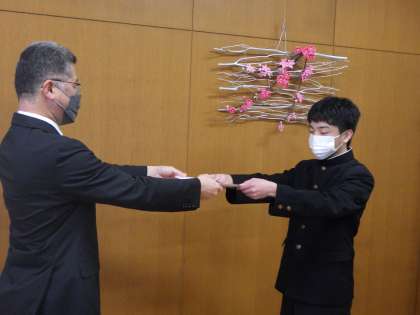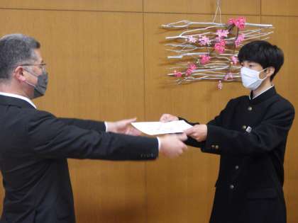 級長、学習リーダー、議員の各代表生徒が校長先生から認証を受けました。