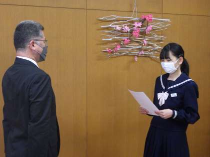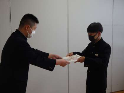 その後、先週、生徒会が実施したあいさつキャンペーンの表彰式が行われました。2年4組が最優秀学級として、表彰を受けました。