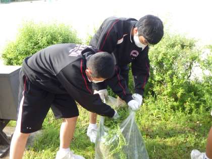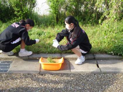 本日、2年生有志ボランティアが校内の除草作業に取り組みました。