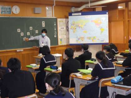 上の写真は、社会の授業です。第1次世界大戦が起きたきっかけについて、理解を深めているところです。
