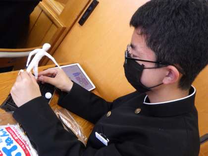 中央の写真は、美術の授業です。いきいきとした動きのある塑像を制作しているところです。
