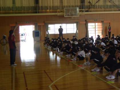 1年生が、豊田市交通安全学習センターの方を講師に迎え、交通安全教室を実施しました。