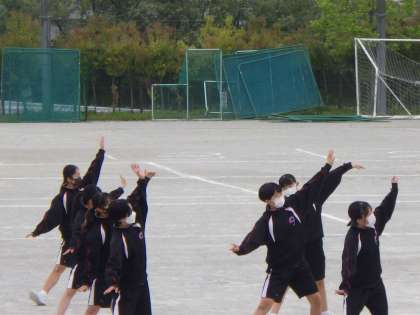 本日から、桜の舞隊がグラウンドでの練習を始めました。