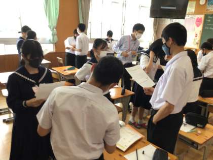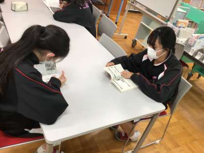 下の写真は、国語で自作の古文を作るための資料を吟味しているよう様子です。