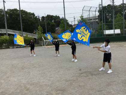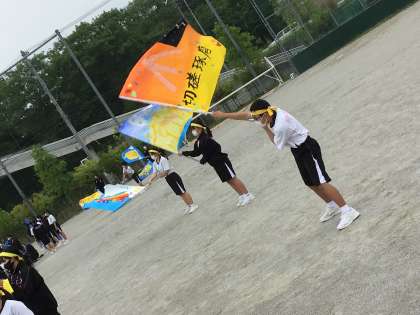 競技の応援に、団旗と学級旗が活躍しています。