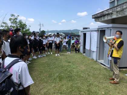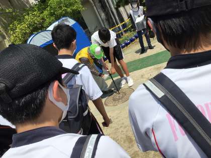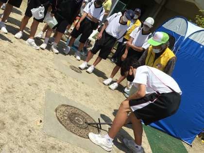 防災倉庫の確認や災害時の簡易トイレ設置演習を行なっています。