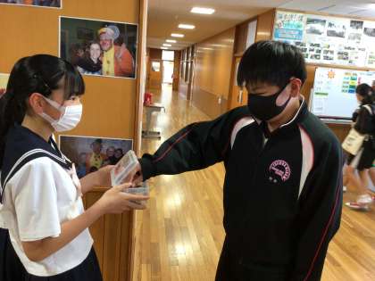 今朝から、福祉委員会の募金活動が始まりました。