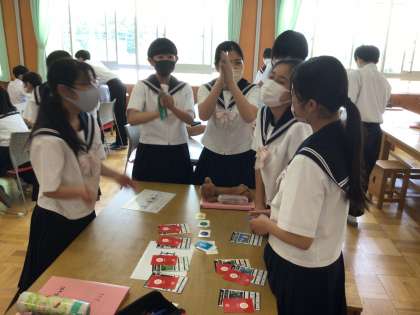 SDGsカードゲームをグループ対抗で行う中で、なぜSDGが必要なのか、どんな取り組みができるのか、考える機会となりました。