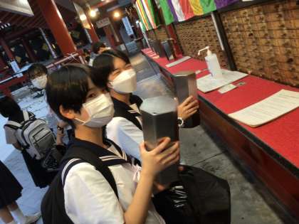 浅草寺でも、おみくじに興じる生徒が多く見られました。