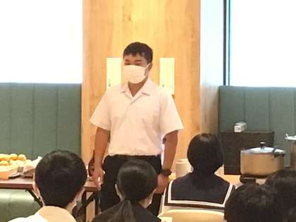 学校生活で自分を支えてくれる仲間、そんな仲間たちと過ごした修学旅行初日で感じた互いを思いやった「協力」について、話されました。