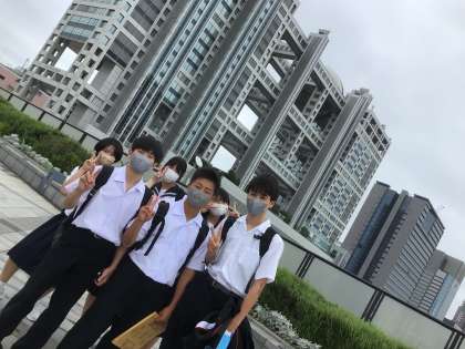 フジテレビ本社ビル前です。