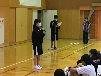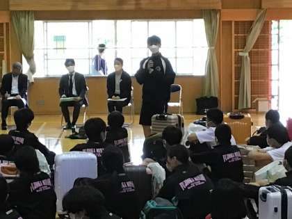 学年の生徒全員が、この修学旅行のスローガン「協力」「成長」「絆」について意識したことや、仲間たちと手に入れたものについて語る交流会となりました。