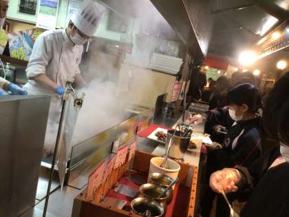 それぞれのアクティビティを終え、昼食会場で学年が勢揃いしました。