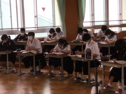 中央の写真は、音楽の授業です。交響曲「モルダウ」の鑑賞をしています。