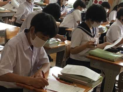 下の写真は、理科の授業です。授業で学んだことをシートにまとめているところです。