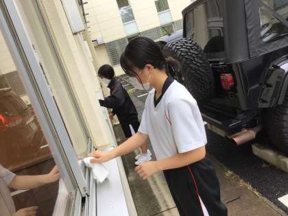 本日は、校舎1階の窓の桟を中心に清掃が行われました。