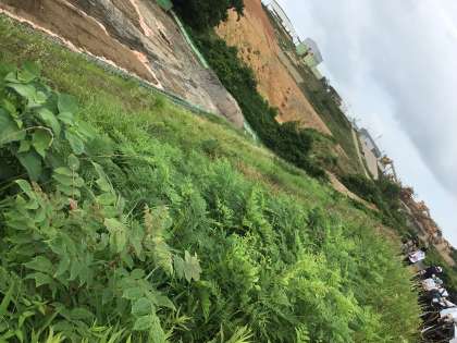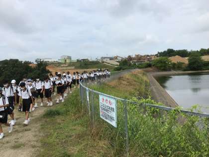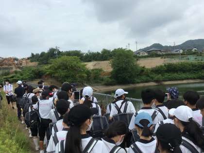 大池の役割を説明していただきました。災害に備えて、高さを出していることも教えていただきました。