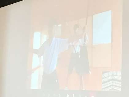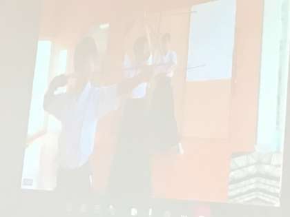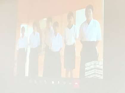 弓道部です。体育館と弓道場をリモートでつなぎました。