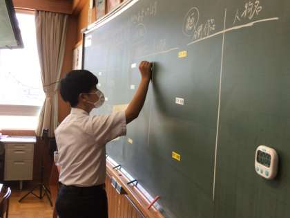 上の写真は、社会の授業です。江戸時代の文化について、まとめています。