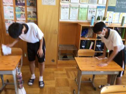 フロアをきれいにするだけでなく、消毒作業もきちんと行っています。