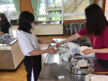 1・2学級が紙漉きをしています。
