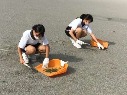 雨上がりで抜きやすくなった草を、根から取り除きました。