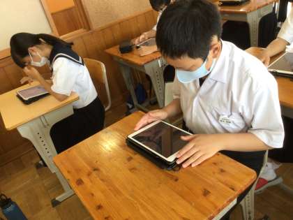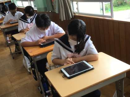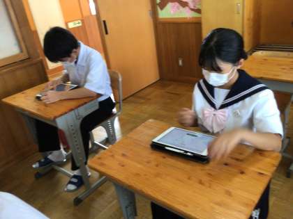 今回はプリントに書き込まず、学習用タブレットを使用して行いました。