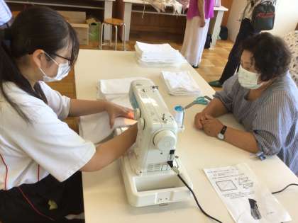 今年度は、雑巾だけでなく、濡れた傘を収納する袋も製作をしました。