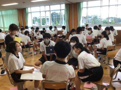 本日、3年生は、循環型社会推進課の方とトヨタ生活協同組合の方を講師に招き、フードロス講習会を実施しました。また、フードロスの解消に貢献する惣菜・弁当のアイデアをグループで考えました。