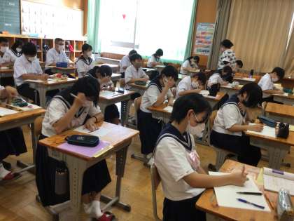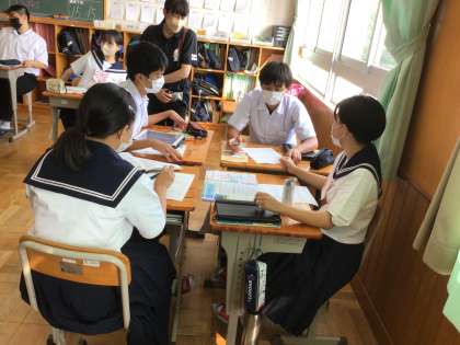 中央の写真は、保健の授業です。がんについて学び、自分の生活を見直したり、将来的に意識していきたい事柄をグループで話し合ったりしました。