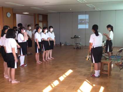 上の写真は、金曜日に訪れるこども園で披露する内容の確認と練習しています。