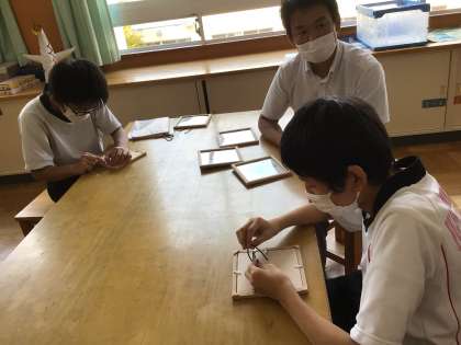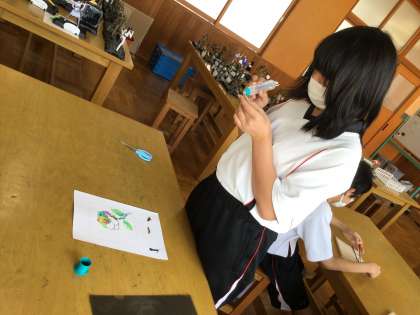 ちぎり絵や水彩画の作品を制作してします。また、完成した作品は飾れるように、額に入れています。